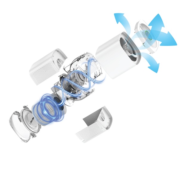 • • متراژ تحت پوشش 40 متر مربع• شکل ظاهری: استوانه‌ای، چندلایه، تعویض آسان• ابعاد: قطر ۱۶۰ × ارتفاع ۱۷۰ میلی‌متر• فیلتر اولیه: گرد و غبار، مو، پرز و کرک حیوانات• فیلتر HEPA پیشرفته: حذف بیش از ۹۹.۹٪ ریزگردها و ذرات میکروسکوپی