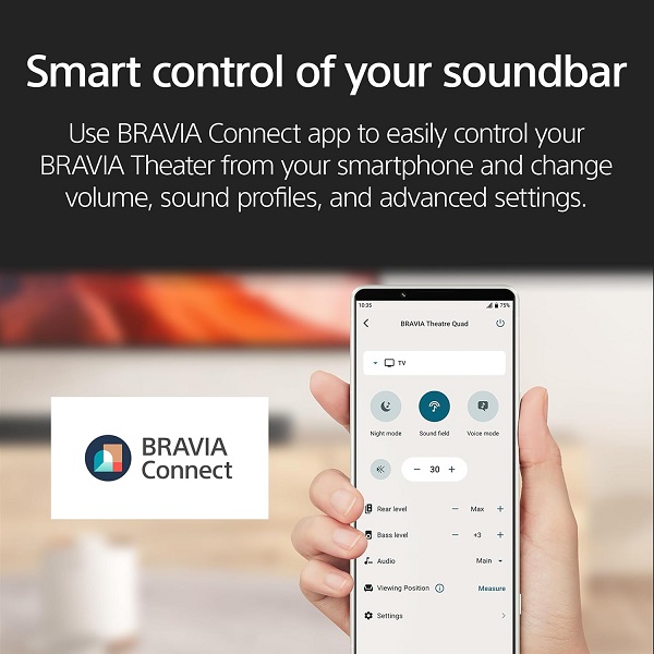گفتگوی کاملاً واضح، حتی در صحنههای اکشن، زمزمههای آرام، صحنه های پر سر و صدا واضح و شفاف شنیده میشوند. راهاندازی و عملکرد آسان از طریق اپلیکیشن تلفن همراه هوشمند BRAVIA Connect کاربر را در تنظیمات اولیه راهنمایی میکند.